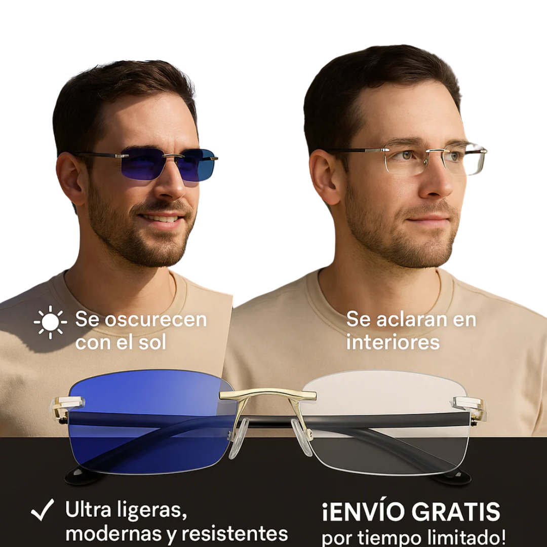 Las lentes fotocromáticas se ajustan automáticamente a la luz: se oscurecen al estar al sol y se aclaran en interiores. ¡Perfectas para todo el día sin cambiar de gafas!